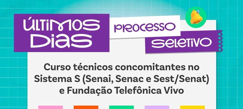 Podem se inscrever estudantes da 1ª ou 2ª série do Ensino Médio ou das 1ª e 2ª etapas da Educação de Jovens e Adultos (EJA). As inscrições devem ser feitas no portal Seleção Aluno (clique aqui e confira), nos ícones “CONCOMITANTE” (para o curso de Ciência de Dados) e “SISTEMA S” (para os demais cursos).