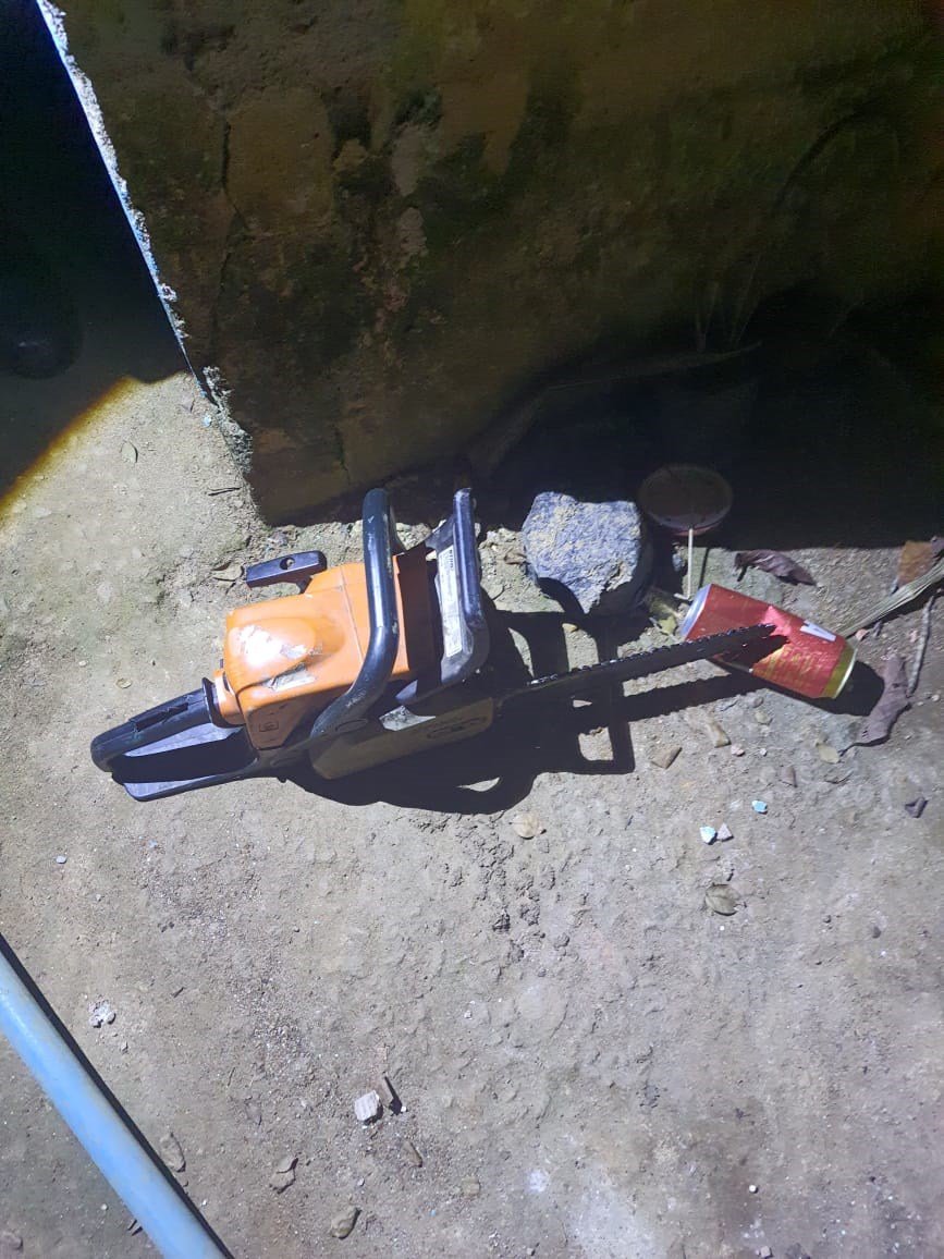Na ocasião, César teria dado partida em uma motosserra e caminhado em direção à mulher e ao irmão. Diante disso, o irmão da vítima pegou uma enxada e desferiu um único golpe na cabeça de César, que morreu no local.