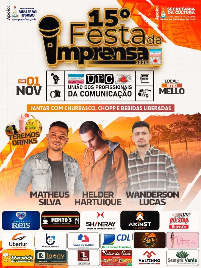 A tradicional Festa da Imprensa de Barra de São Francisco chega à sua 15ª edição, consolidando-se como um dos eventos mais importantes de valorização dos profissionais da comunicação no município e em toda a região noroeste capixaba e leste mineiro.