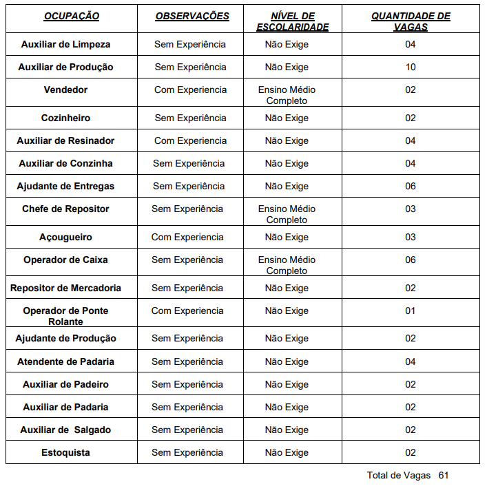 A gestão das vagas é realizada pela Secretaria de Estado do Trabalho, Assistência e Desenvolvimento Social (Setades), por meio da Subsecretaria de Trabalho, Emprego e Geração de Renda (Subtrab). Entre as funções disponíveis, destacam-se cargos que exigem o ensino médio completo e ocupações que não possuem exigência.