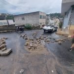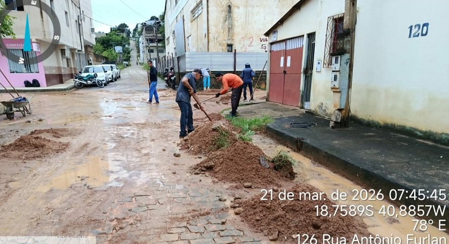 As fortes chuvas que atingiram o município de Barra de São Francisco na noite desta sexta-feira (20) e durante a madrugada deste sábado (21) provocaram diversos transtornos em vários bairros da cidade. Diante da situação, a Prefeitura mobilizou equipes da Secretaria Municipal de Limpeza Pública, que iniciaram um grande mutirão de limpeza em diferentes pontos do município. Servidores, caminhões e máquinas foram deslocados para atuar na retirada de lama, barro e entulhos acumulados após o temporal. Entre os bairros mais afetados estão Campo Novo, Vila Landinha, Vila Vicente, Carabina, Irmãos Fernandes e Vila Gonçalves, Morada Feliz, além de outras localidades que registraram acúmulo de lama e até deslocamento de calçamento. No bairro Colina, houve queda de barreira e também de um muro, aumentando os riscos para moradores da região.