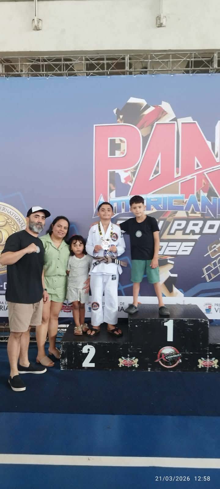 No último sábado, dia 21 de março, atletas de Barra de São Francisco marcaram presença no Campeonato Pan-Americano promovido pela CBLP em parceria com a X-Combat. O evento foi realizado em Vitória (ES), no Ginásio Tancredão, e reuniu competidores de alto nível em diversas categorias. Representando a cidade francisquense, os atletas da equipe Relson Gracie conquistaram resultados expressivos. O jovem atleta Rodrigo garantiu o terceiro lugar na categoria master super pesado faixa preta e alcançou a quarta colocação na categoria absoluto master faixa preta, demonstrando grande desempenho diante de adversários experientes.