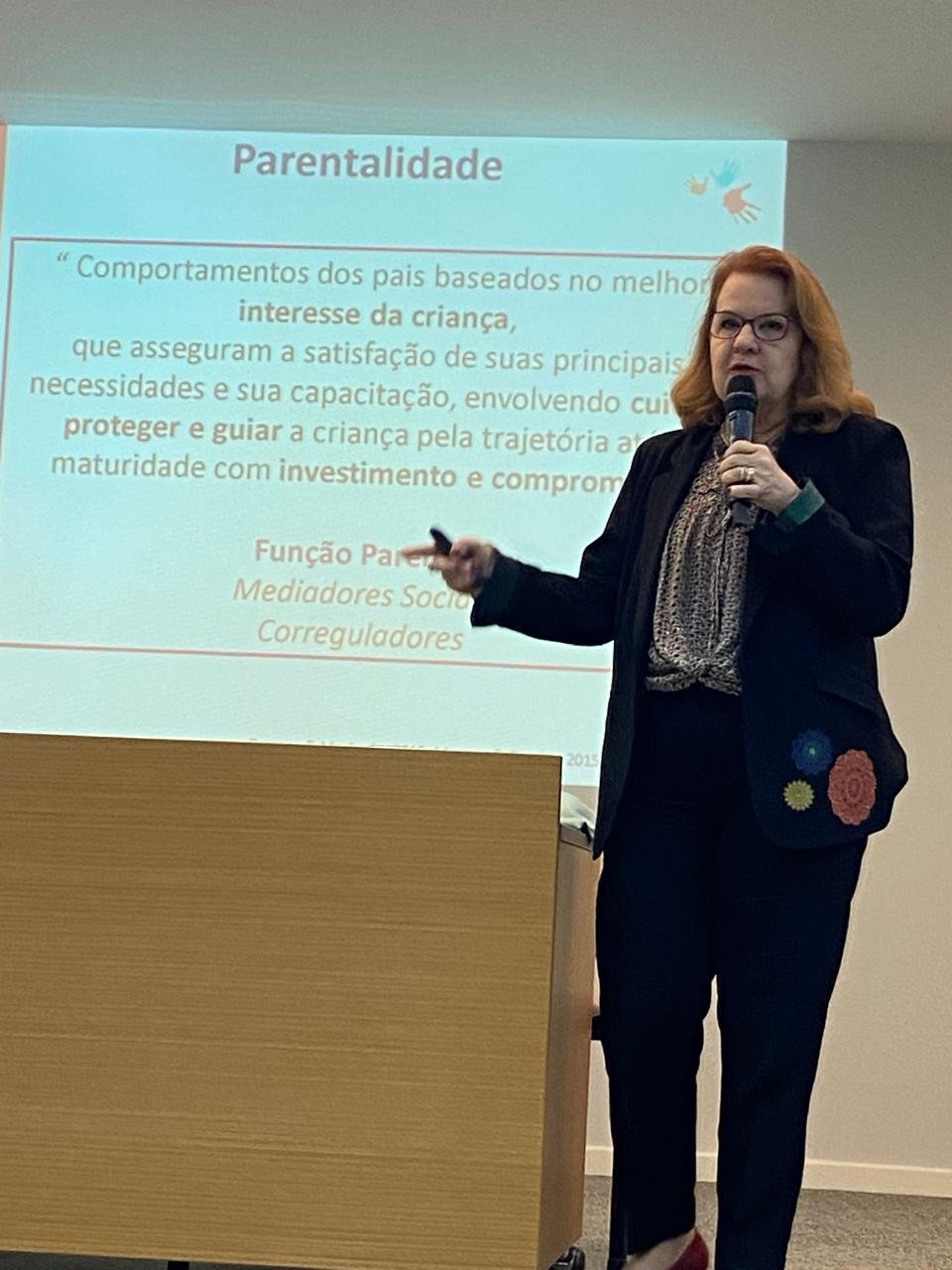 A palestra magna foi conduzida pela Prof.ª Dr.ª Maria Beatriz, que trouxe contribuições relevantes sobre os desafios da primeira infância e a importância da articulação entre diferentes setores para a efetivação de políticas públicas voltadas à proteção integral das crianças.