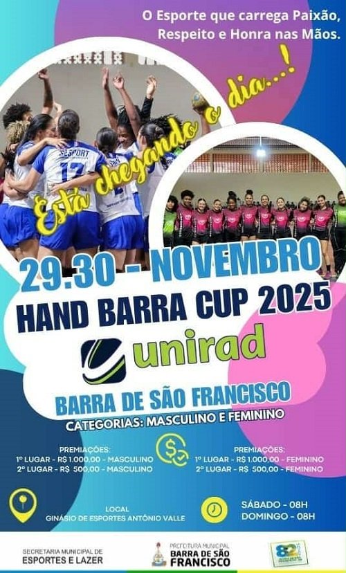 Barra de São Francisco será palco de um dos maiores encontros de handebol da região Sudeste. Nos dias 29 e 30 de novembro de 2025, o município sediará o Hand Barra Cup, torneio que reunirá equipes masculinas e femininas de três estados brasileiros: Espírito Santo, Minas Gerais e Bahia.
