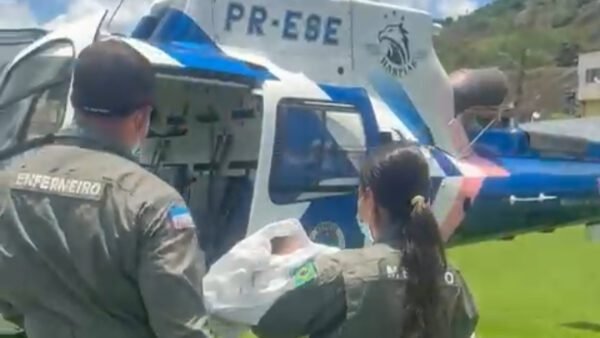 Uma menina de 1 ano e 5 meses, com cerca de 50% do corpo queimado por água fervente, foi resgatada na manhã deste sábado (28) pelo helicóptero do Notaer (Núcleo de Operações e Transporte Aéreo) em Águia Branca, no Noroeste do Espírito Santo.