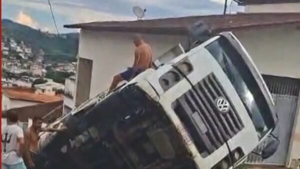 A prefeitura informou que o caminhão já foi retirado do local e que o calçamento da rua será reparado.