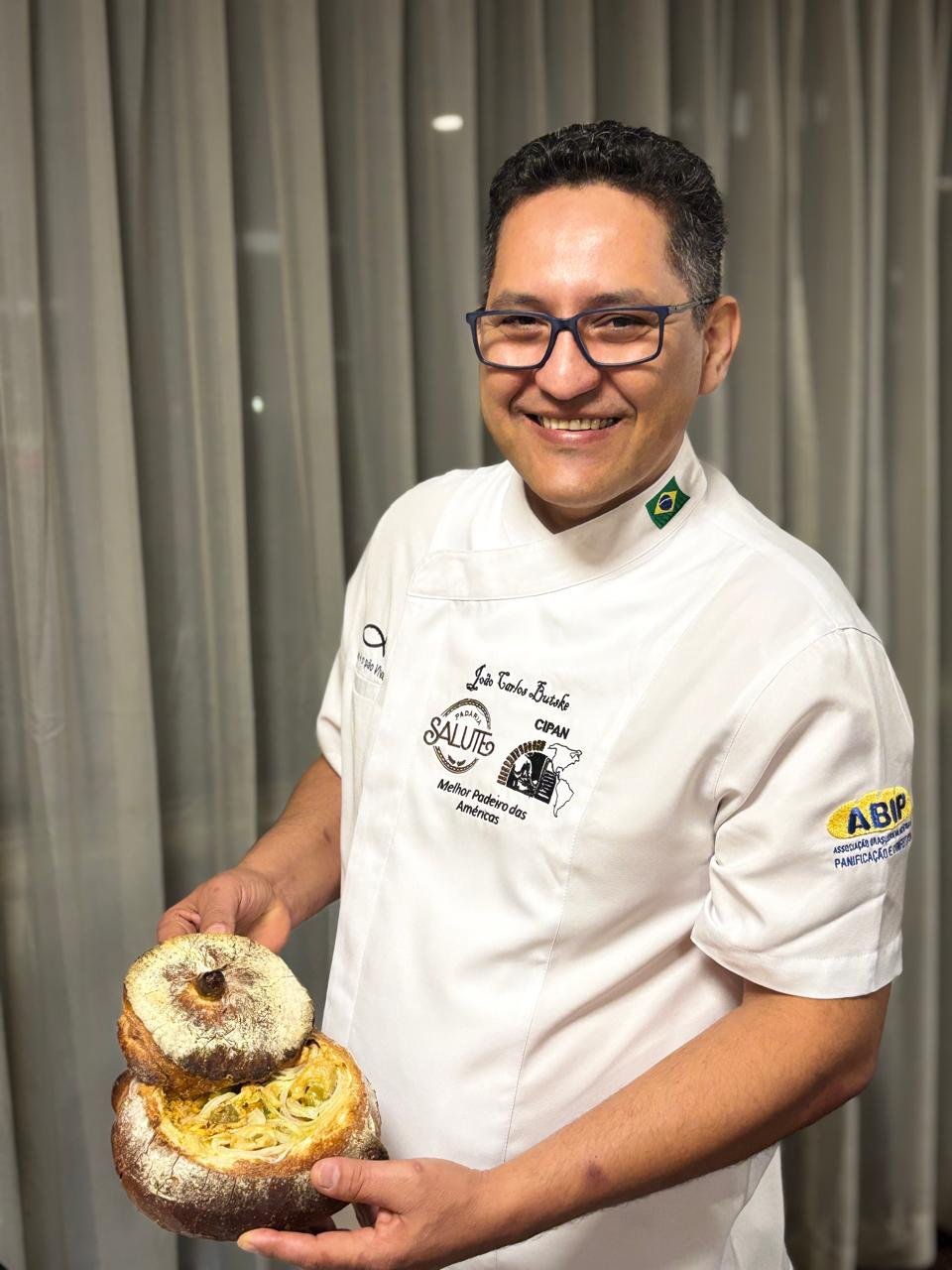 João Carlos foi escolhido o Melhor Padeiro das Américas 2024/2025 pela Cipan e agora, representou a América Latina na final mundial, onde apresentou uma criação de destaque: o pão torta capixaba. “Esse pão é a fusão entre memória afetiva e inovação artesanal. Uma receita que conta a história de um povo, respeita suas raízes e celebra a criatividade da panificação brasileira. Mais que um alimento: uma declaração de amor ao Espírito Santo”, narra.