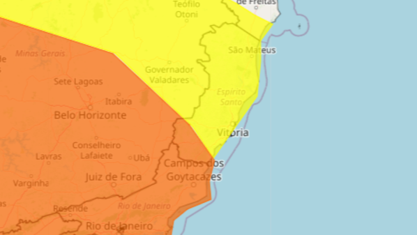 O Instituto Nacional de Meteorologia (Inmet) emitiu dois alertas meteorológicos na manhã desta segunda-feira (17): um de nível laranja, indicando perigo, e outro de nível amarelo, que representa perigo potencial. Ambos os avisos são para tempestades em cidades do Espírito Santo. Os alertas valem até 10h de terça-feira (18).