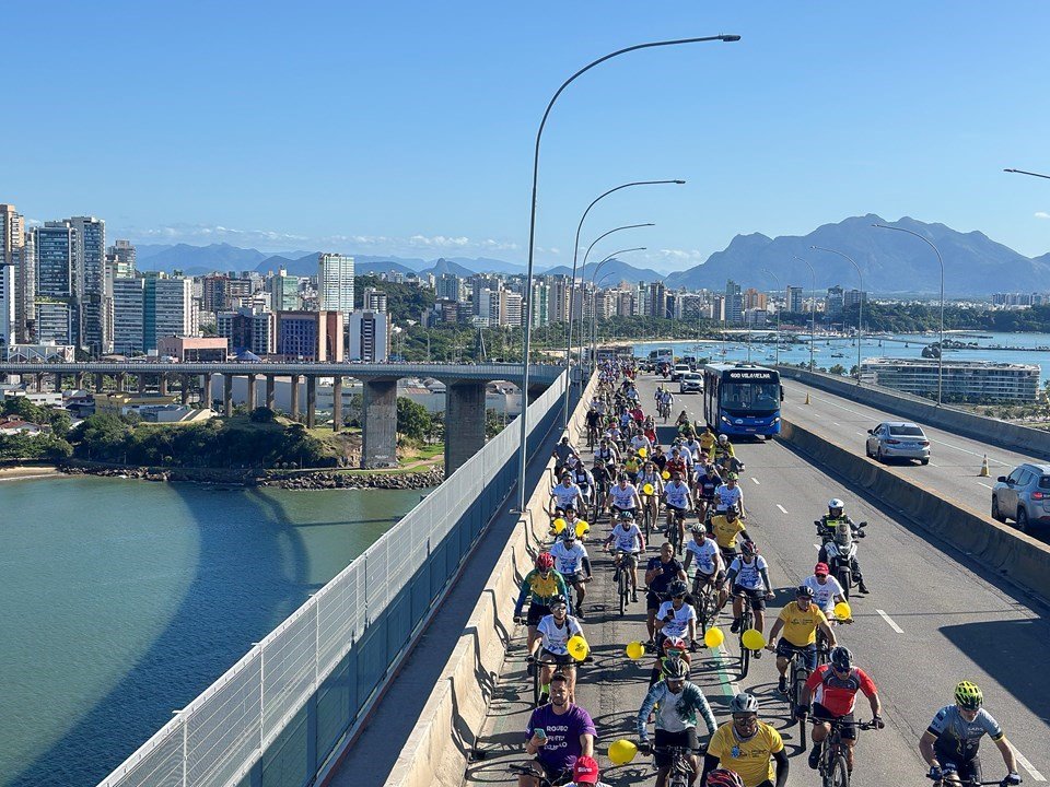 Os ciclistas saíram da Praça do Papa, em Vitória, e passaram pela Terceira Ponte em direção à Prainha, em Vila Velha, de onde retornaram para o ponto de partida, em Vitória.