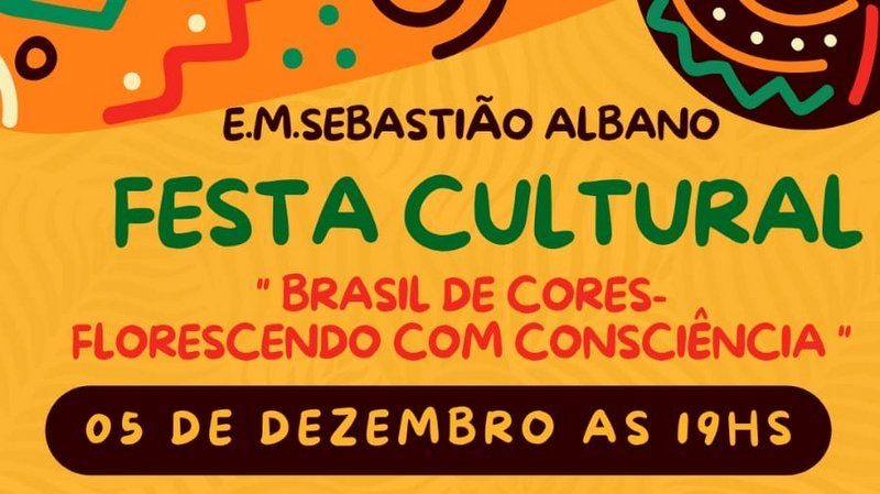 A Escola Municipal Sebastião Albano vai promover, na sexta-feira (05 de dezembro), às 19h, sua tradicional Festa Cultural 2025, que este ano tem como tema “Brasil de Cores – Florescendo com Consciência”. O evento promete reunir estudantes, familiares e toda a comunidade em uma noite especial de celebração, arte e valorização da diversidade cultural brasileira.