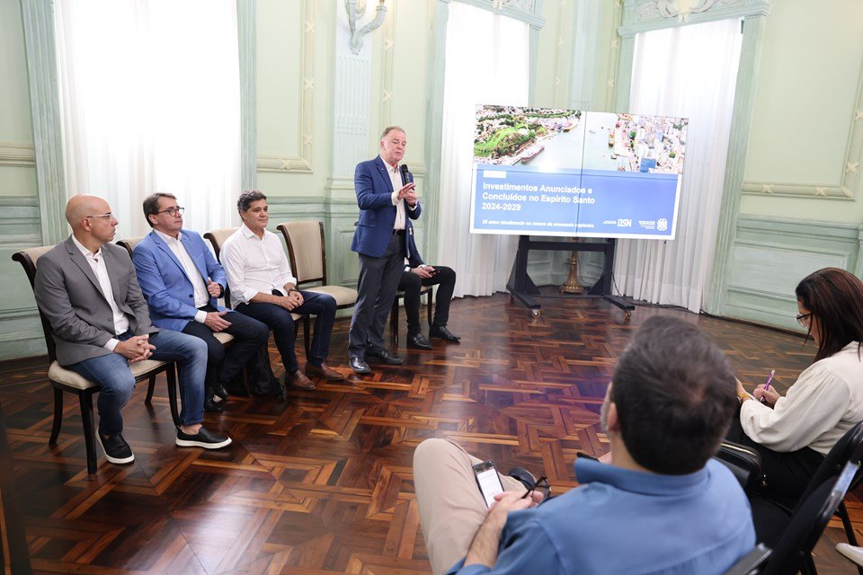 O Espírito Santo tem R$ 137,6 bilhões em investimentos anunciados até o ano de 2029, o maior valor de toda a série histórica desde 2000. Os dados fazem parte da 25ª edição da publicação “Investimentos Anunciados e Concluídos no Espírito Santo 2024-2029”, elaborada pelo Instituto Jones dos Santos Neves (IJSN). A divulgação foi feita pelo governador do Estado, Renato Casagrande, e pelo vice-governador Ricardo Ferraço, em coletiva de imprensa realizada no Palácio Anchieta, em Vitória.