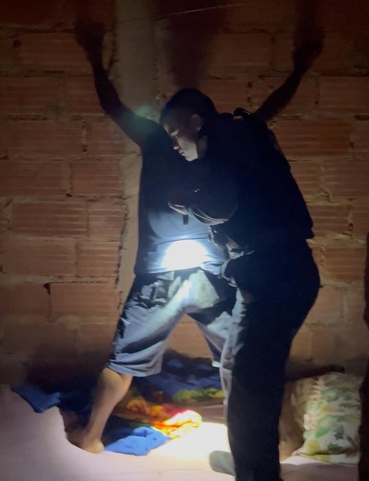 Durante a operação, outro indivíduo, um jovem de 18 anos, também foi preso por armazenar uma arma de fogo do tipo pistola calibre 9mm, com a numeração suprimida, o que configura crime de porte ilegal de arma com elemento de identificação raspado.
