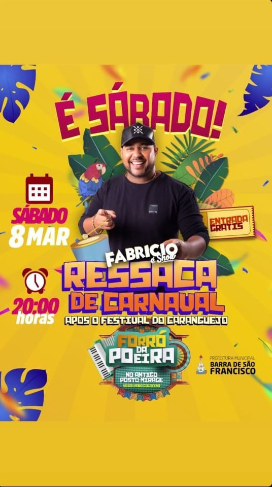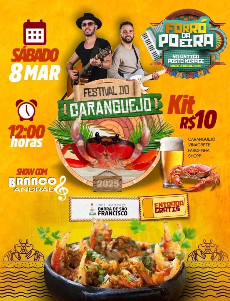 A Prefeitura de Barra de São Francisco, por meio da Secretaria da Cultura, realizará no próximo sábado (8), a Ressaca de Carnaval e o1º Festival do Caranguejo. O evento, com entrada gratuita, acontece no novo espaço de eventos da cidade no antigo Posto Miragem, às margens da rodovia ES-080, sentido Colatina.