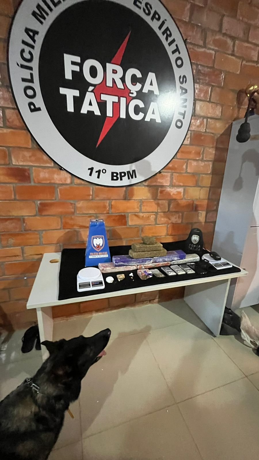 Com o apoio da cadela farejadora Athena, os policiais conseguiram localizar a sacola dispensada, que continha uma grande quantidade de drogas. Após diligências, o suspeito que havia fugido inicialmente foi encontrado escondido em um imóvel próximo e detido.