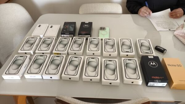 Durante o cumprimento do mandado de busca e apreensão nos endereços investigados foram apreendidos aparelhos celulares e notebooks usados pelos investigados, veículos avaliados em mais de R$ 300 mil e dezenas de aparelhos celulares novos de última geração sem nota fiscal.