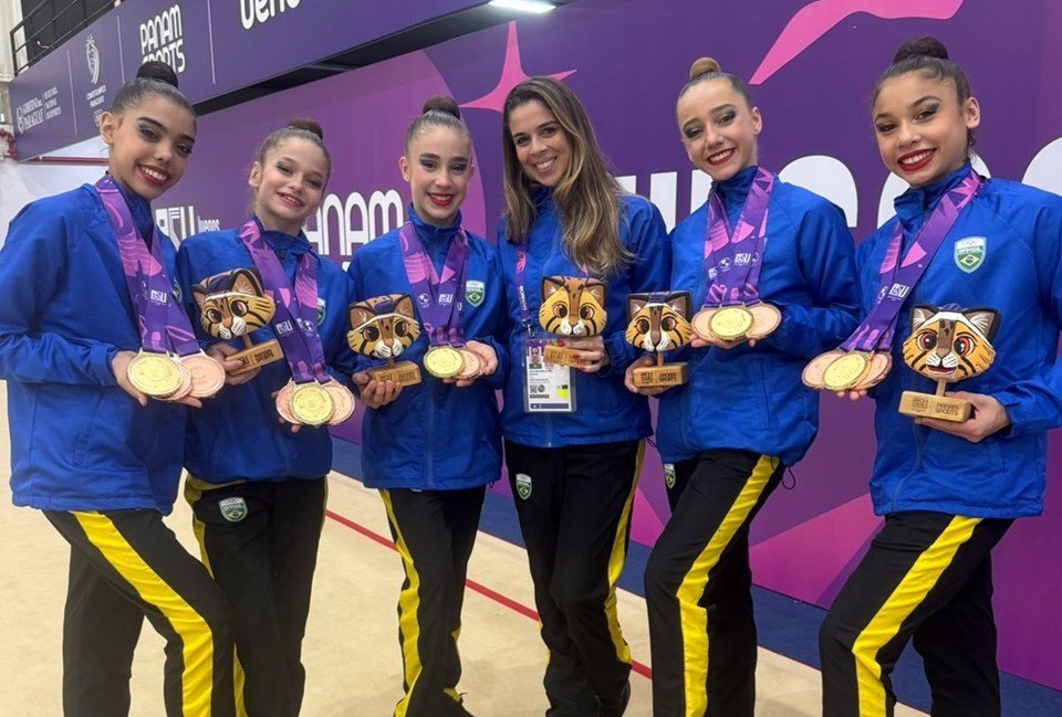 O lugar mais alto do pódio para o Brasil veio no aparelho arco. Já as terceiras colocações foram nas maças e na disputa geral. Alice Medeiros, Andriely Cichovicz, Clara Vaz e Júlia da Cruz também fizeram parte do conjunto, que é treinado pela capixaba Juliana Coradine.