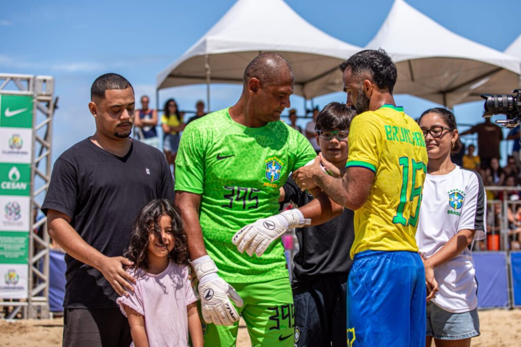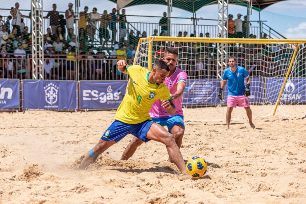 As areias da Praia de Meaípe, em Guarapari, foram palco de um momento histórico para o esporte brasileiro com a realização do jogo de despedida de dois dos maiores nomes do beach soccer mundial: o goleiro Mão e o capitão Bruno Xavier. O evento reuniu torcedores, autoridades e amantes do esporte em uma celebração marcada por emoção, homenagens e reconhecimento a trajetórias que ajudaram a consolidar o Brasil como potência internacional no futebol de areia.