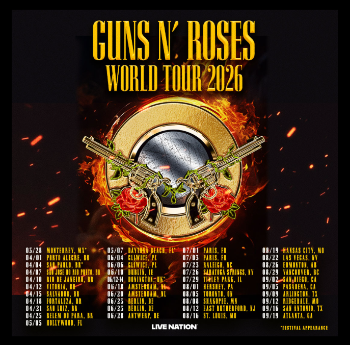 Com mais de 100 milhões de discos vendidos no mundo, o Guns N’ Roses coleciona hits que atravessam décadas e seguem lotando shows, como Sweet Child O’ Mine, November Rain, Paradise City e Welcome to the Jungle.
