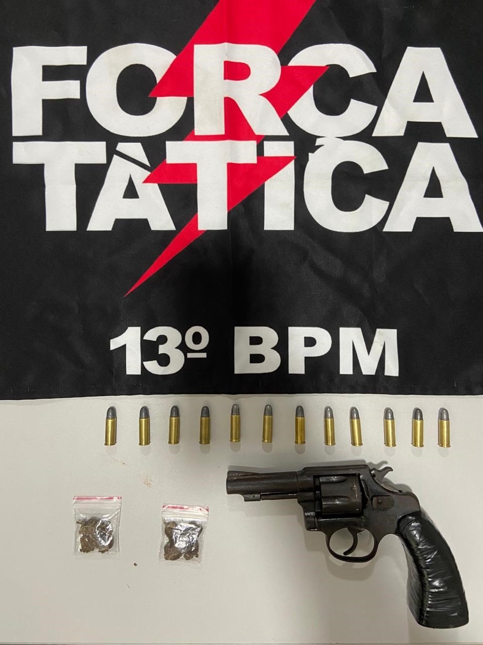 A operação teve início após a polícia receber informações de que um indivíduo estaria portando uma arma de fogo em determinado local. Diante da denúncia, a equipe se deslocou ao endereço indicado e realizou a abordagem, que resultou na apreensão de um revólver calibre 32, além de 12 munições do mesmo calibre e duas buchas de maconha.
