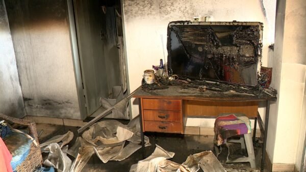 No quarto, restaram apenas cinzas. O teto de PVC desabou, a televisão derreteu e até a encanação foi danificada.