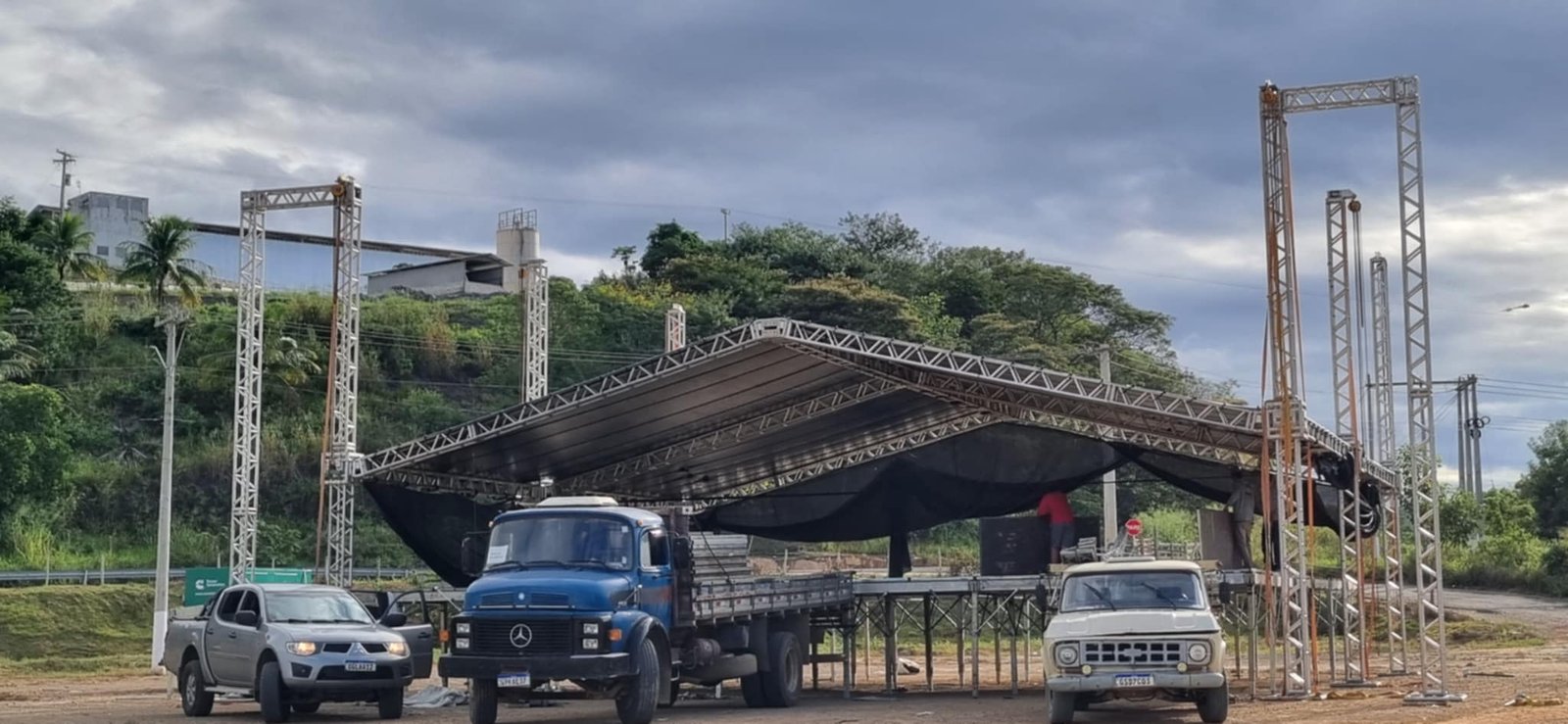 Iniciada a montagem do palco para a grande festa de Barra de São Francisco