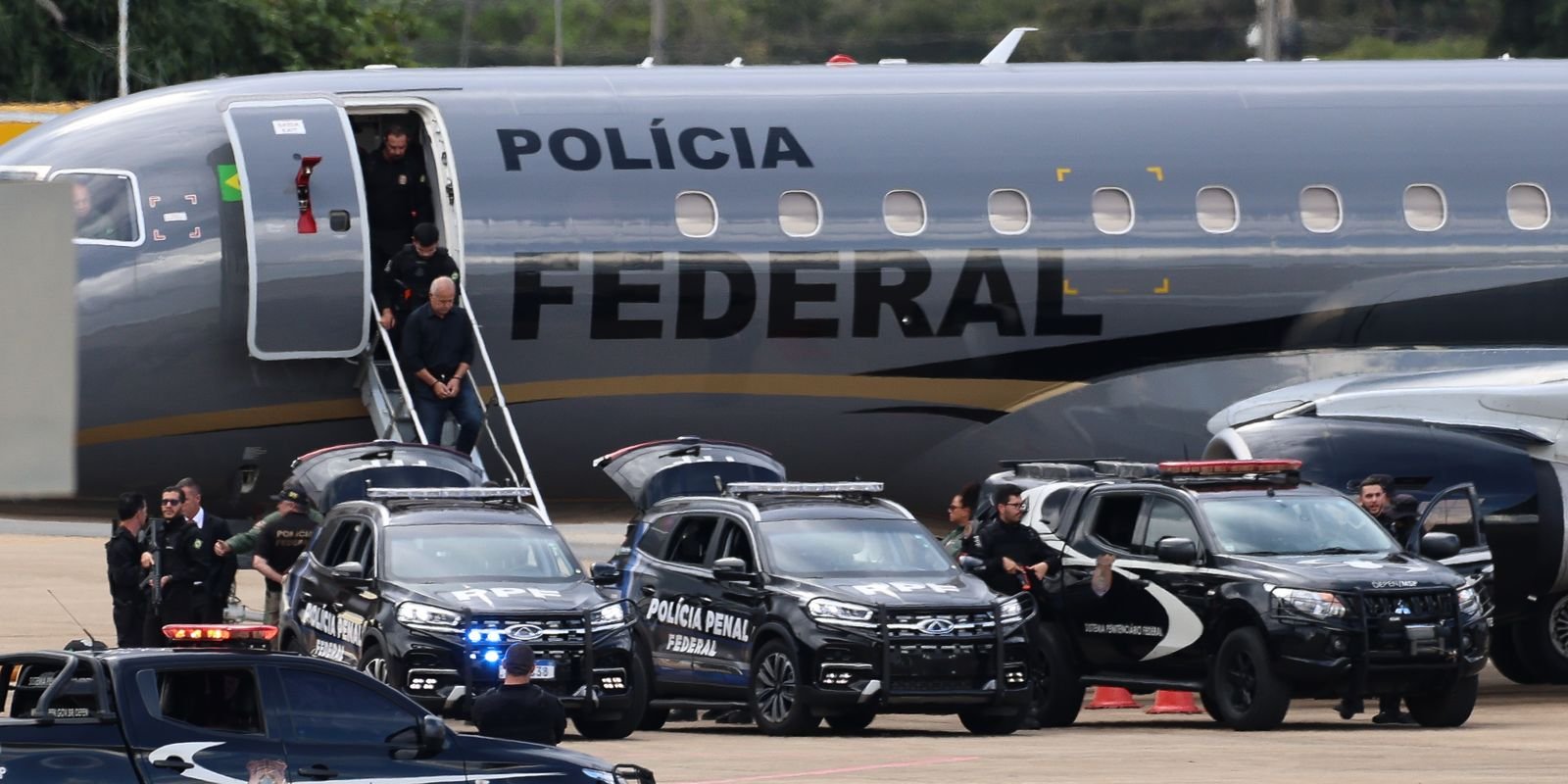 Os irmãos Domingos e Chiquinho Brazão, e o delegado da Polícia Civil Rivaldo Barboda, detidos ainda pela manhã, durante a Operação Murder Inc, chegaram à capital federal por volta das 16h, em aeronave da PF.