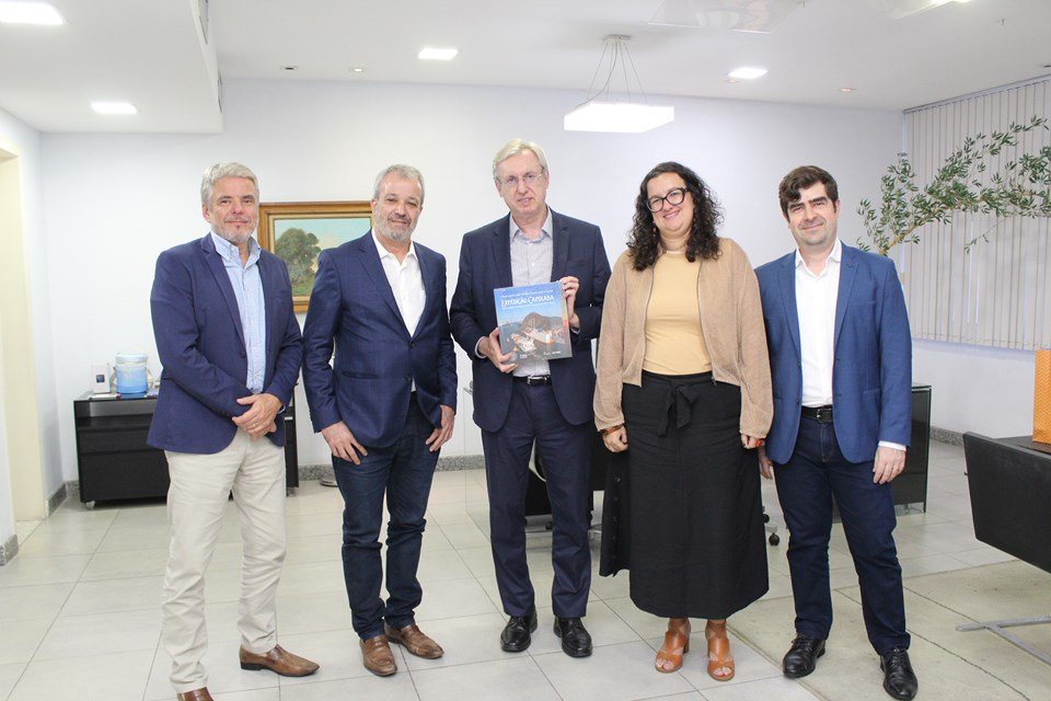 O presidente da Financiadora de Estudos e Projetos (Finep), Celso Pansera, esteve no Bandes, nessa quarta-feira (19), para uma visita institucional ao banco capixaba. A parceria entre as duas instituições já acontece desde o ano passado, quando a Financiadora aumentou o limite do banco capixaba para financiamentos à inovação para R$ 150 milhões.