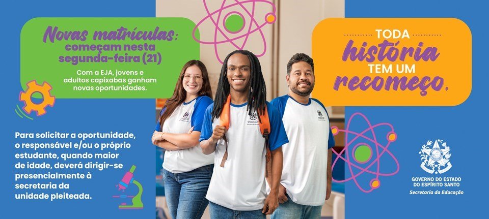 Os jovens e adultos que desejam retomar os estudos e que não participaram da Chamada Escolar 2025 ainda podem garantir a sua vaga. A partir da próxima segunda-feira (21), basta procurar a escola onde gostaria de estudar e se matricular para uma das vagas ofertadas pelo Governo do Estado.