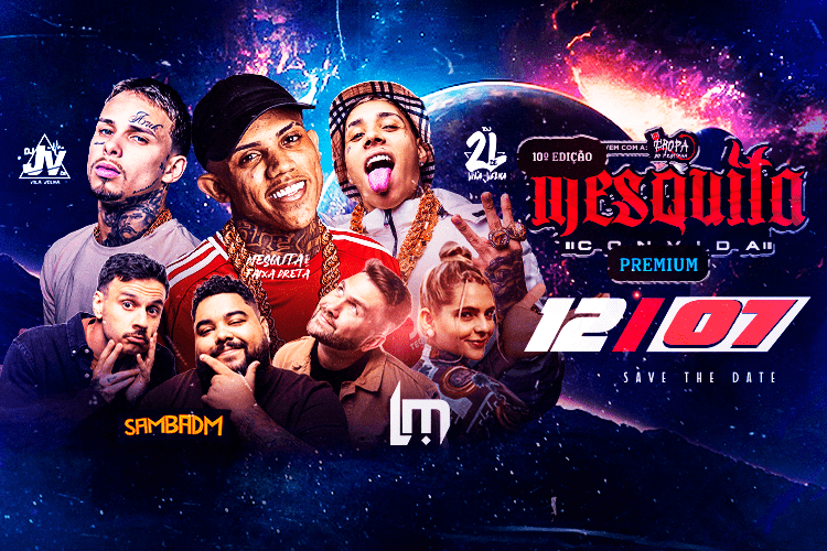 Com um line-up de peso, o evento promete reunir grandes nomes da música urbana e do pagode em um só lugar. Entre os destaques, estão DJ JV de Vila Velha, DJ 2L de Vila Velha, Laura Murad, SambADM, além do anfitrião, DJ Mesquita de NV.