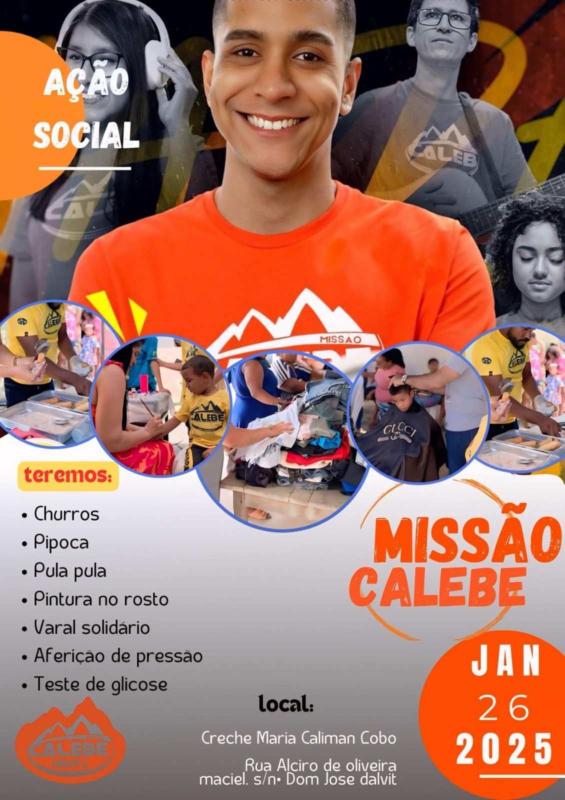 A Missão Calebe é uma iniciativa de impacto social que reúne voluntários dedicados a servir a comunidade com ações práticas e transformadoras. Este projeto já foi reconhecido pelo município, sendo incluído no calendário oficial através da Lei Municipal Nº 3.790/2024, que institui o Dia Municipal da Missão Calebe.
