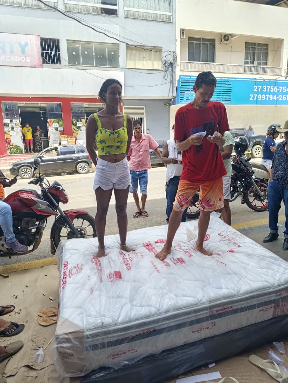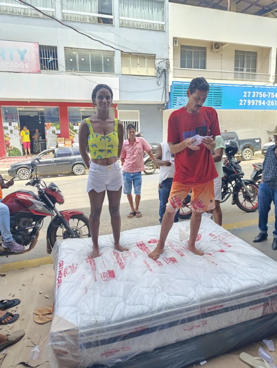 Um dos momentos mais aguardados foi o Desafio do Colchão, que começou com 12 participantes e atraiu a atenção do público. Após horas de resistência, o grande vencedor foi o pedreiro Jocimar Paiva Chagas, morador do bairro Colina, que conquistou o prêmio e arrancou aplausos dos presentes.