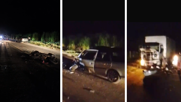 Um homem que não teve o nome nem a idade divulgados morreu em um acidente entre a moto que ele pilotava e dois carros na noite de quinta-feira (12), no km 32 da BR 259, na altura de Baunilha, em Colatina, no Noroeste do Espírito Santo.