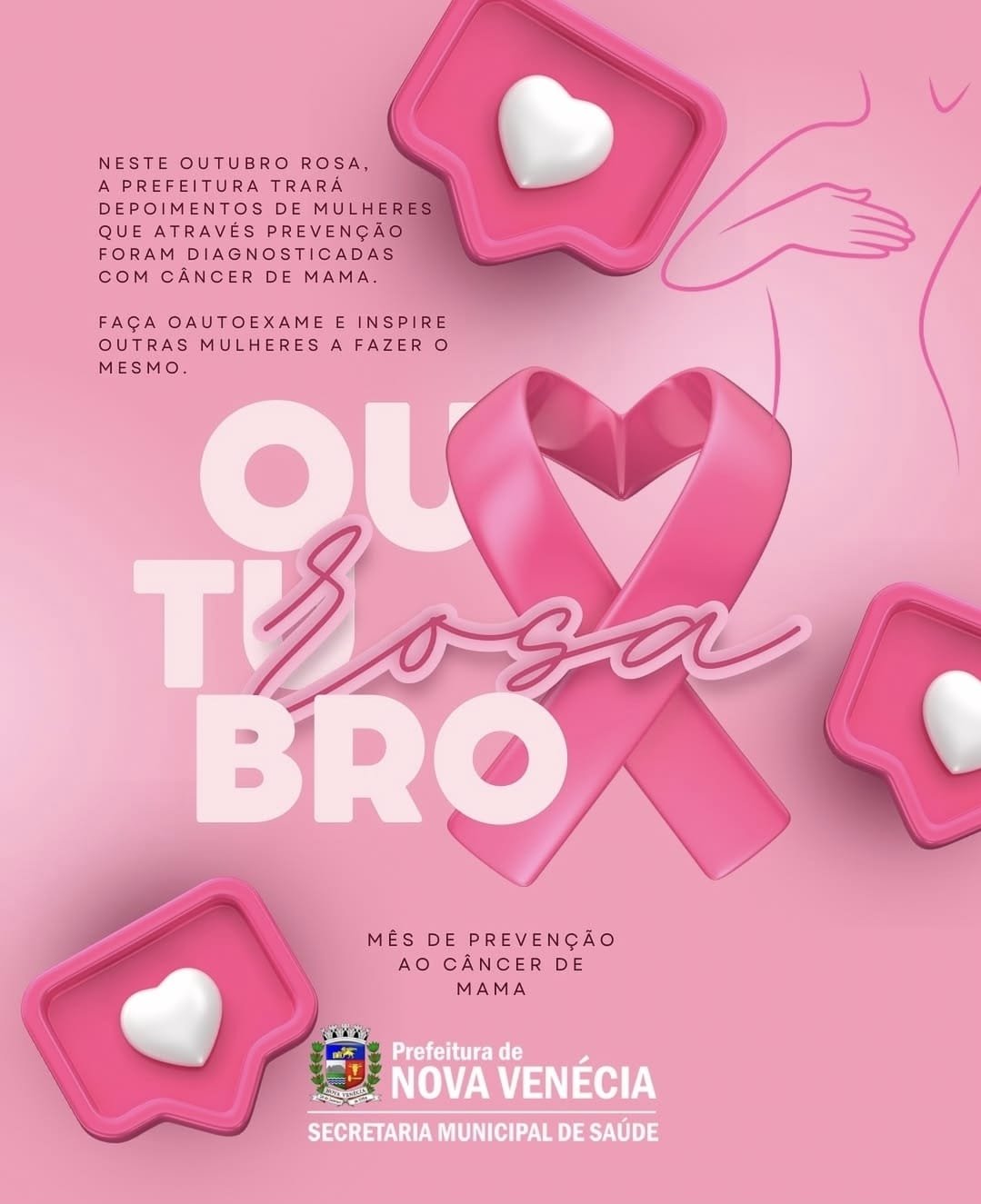 O mês de outubro reserva uma diversa programação da Prefeitura de Nova Venécia em alusão ao Outubro Rosa, período dedicado à conscientização sobre a importância da prevenção e do diagnóstico precoce do câncer de mama e de colo de útero.