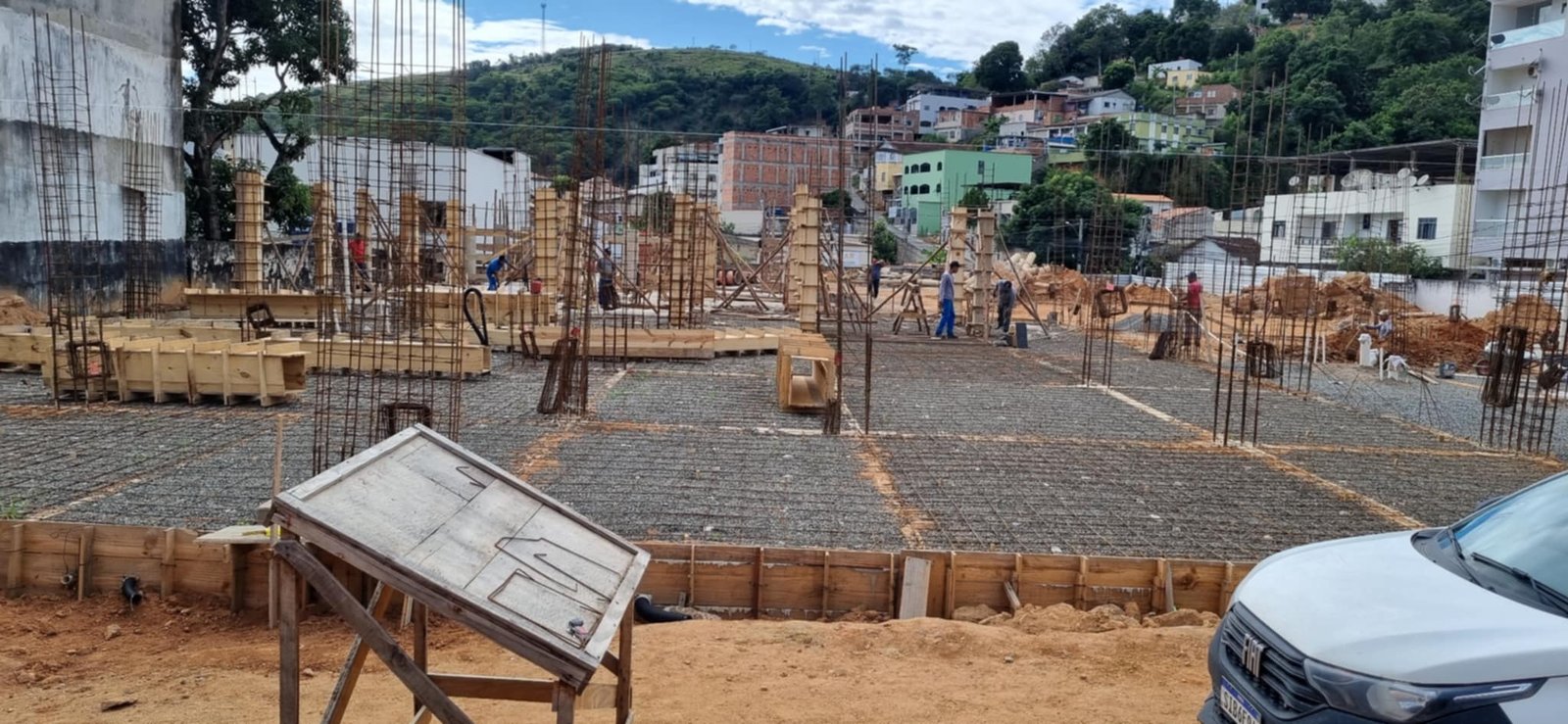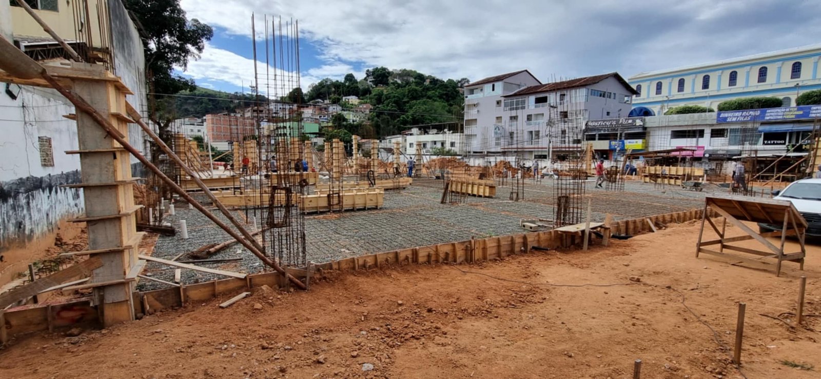 As obras de construção do novo Terminal Rodoviário de Barra de São Francisco seguem em ritmo intenso no centro da cidade, mobilizando diversos trabalhadores no canteiro. A movimentação no local é constante, com a expectativa de que, ainda neste final de semana, mais uma parte da laje do primeiro piso seja concretada — uma etapa anterior já foi concluída. As colunas para a segunda laje também estão sendo erguidas e a próxima fase deverá ser iniciada em breve.