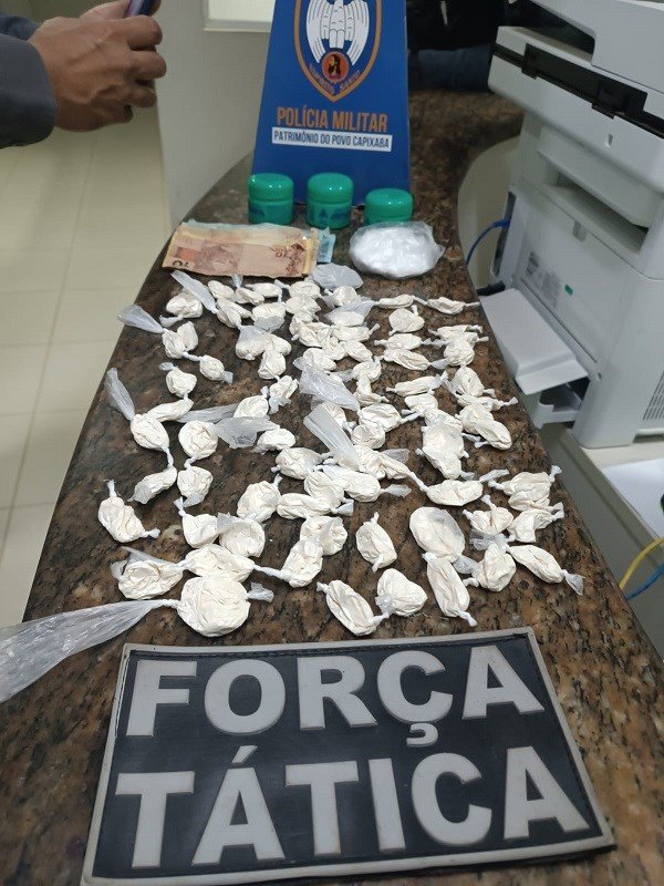 No local foram encontrados 83 papelotes de cocaína. A equipe policial realizou uma busca na residência do suspeito, onde encontraram mais entorpecentes escondidos no lixo do banheiro. No momento da abordagem, também estavam na residência a amasiada do suspeito e um usuário de drogas que admitiu estar comprando os entorpecentes.