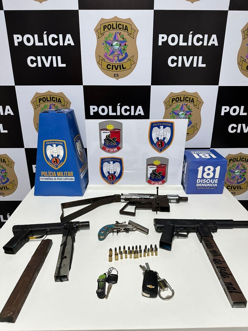 Uma operação conjunta da Polícia Civil do Espírito Santo (PCES) e da Polícia Militar do Espírito Santo (PMES), realizada na tarde dessa quarta-feira (25), no município de Pinheiros, resultou na apreensão de quatro adolescentes envolvidos em ato infracional análogo ao crime de roubo e na recuperação de dois veículos roubados. Na ação, também foram apreendidas duas submetralhadoras de fabricação caseira, além de um revólver calibre .22, um simulacro de submetralhadora e dois aparelhos celulares pertencentes à vítima.
