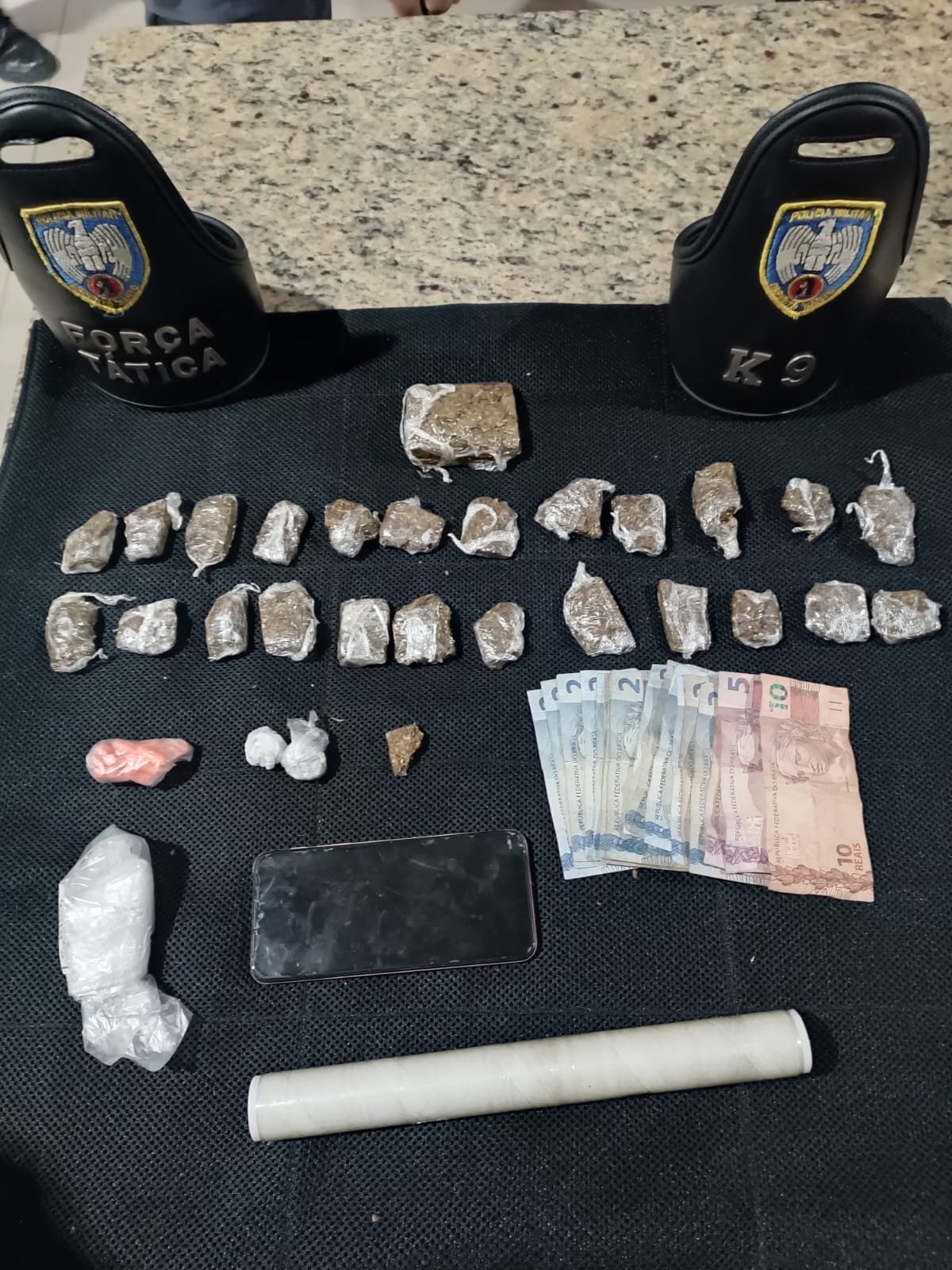Ao chegarem ao local, os policiais visualizaram um homem que tentou fugir ao perceber a presença da polícia, mas foi alcançado e abordado. Durante a fuga, ele descartou parte das drogas. No local, a PM encontrou um pedaço grande de maconha, 27 buchas da mesma substância, material para embalagem, um celular e R$ 48,00 em dinheiro.
