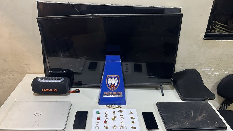 Mesmo após o acidente, os homens tentaram fugir a pé, mas foram contidos pelas equipes da Força Tática. Com eles e no interior do carro foram encontrados diversos bens furtados, como televisores, notebooks, aparelho celular, semijoias e outros eletrônicos. Todo o material foi apreendido e entregue à Polícia Civil.