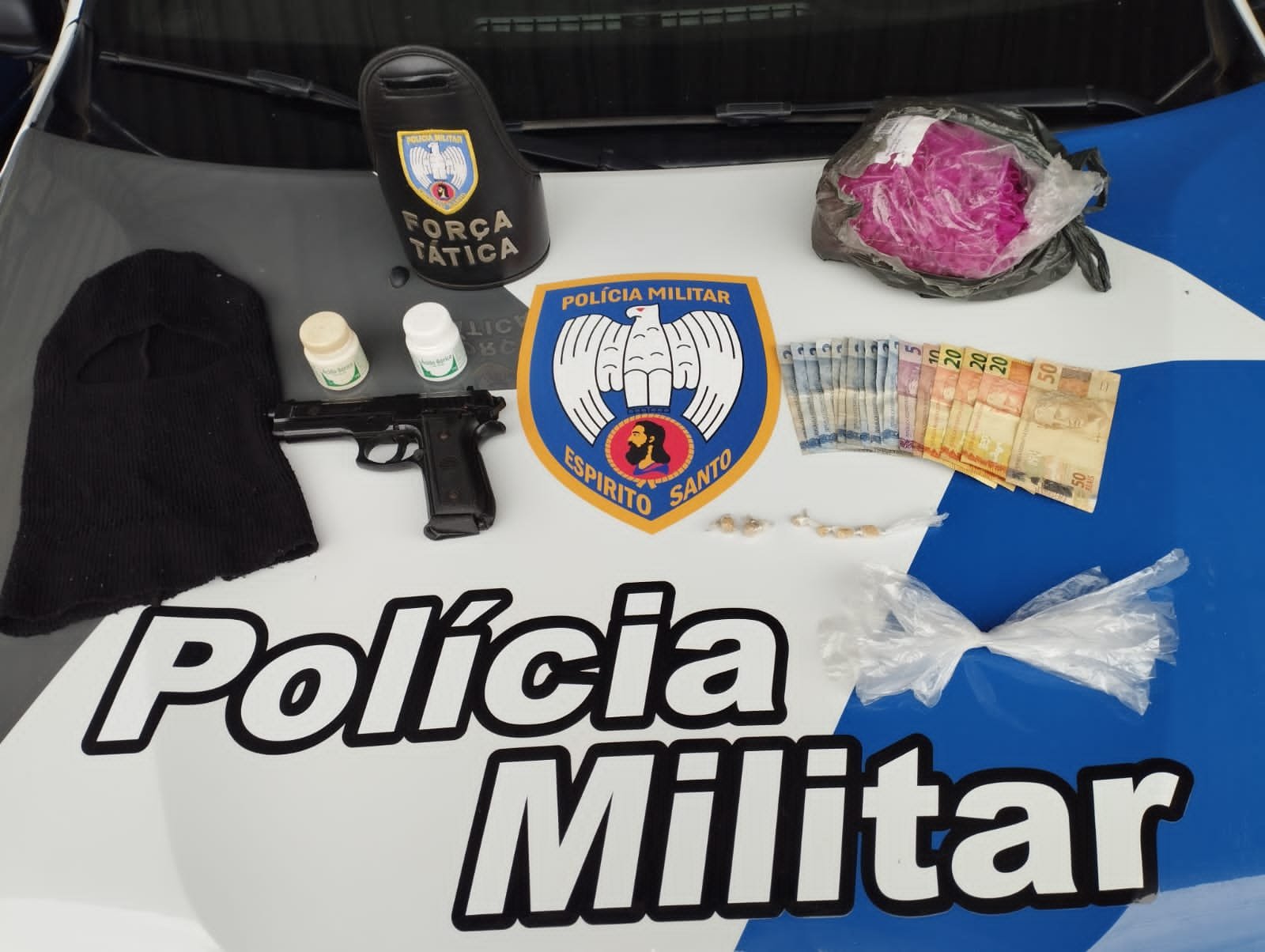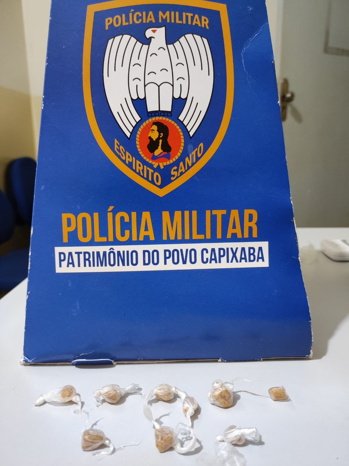 Ouvindo a história do cidadão, os policiais identificaram algumas inconsistências e, ao verificar o nome da suposta vítima de ameaça no sistema da PM, constataram que o rapaz estava com um mandado de prisão em aberto. Neste instante foi feito a detenção do indivíduo que, ao ser vistoriado, encontrou-se consigo oito pedras de crack.