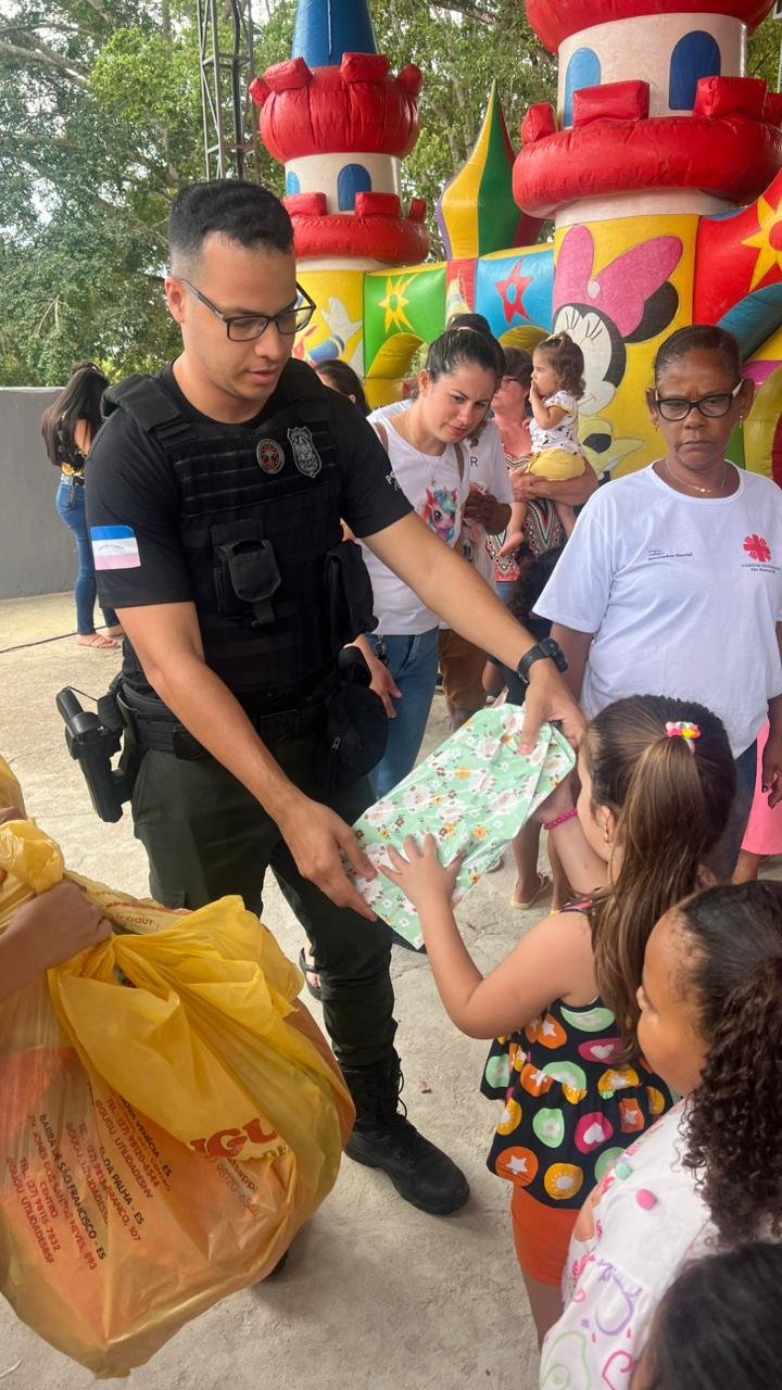 Uma ação emocionante marcou o domingo das crianças do Patrimônio São José (Bode), em São Gabriel da Palha. Policiais penais do Centro de Detenção Provisória (CDP) de São Domingos do Norte realizaram a doação de mais de 100 brinquedos para crianças da comunidade e região.