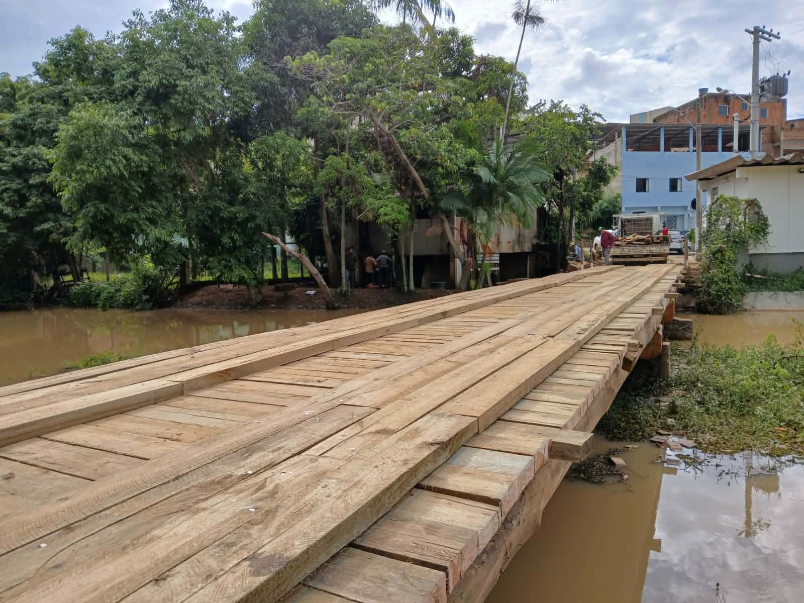 A Prefeitura de Barra de São Francisco, por meio da Secretaria Municipal de Transportes e Estradas, concluiu nesta quarta-feira (11) à construção de uma ponte de madeira ao lado do escritório da Cesan, na Rua José Alberto Costa, no bairro Vila Landinha. Agora uma equipe da secretaria de Defesa Social, Trânsito e Guarda Civil, estão trabalhando na colocação do corrimão. Outras melhorias estão previstas aos arredores da ponte. A obra atende a um antigo pedido da comunidade, que acaba de se tornar realidade. No local já existia uma ponte de madeira antiga, mas, com o passar dos anos, a estrutura se deteriorou devido à ação do tempo, impossibilitando a travessia segura dos moradores.
