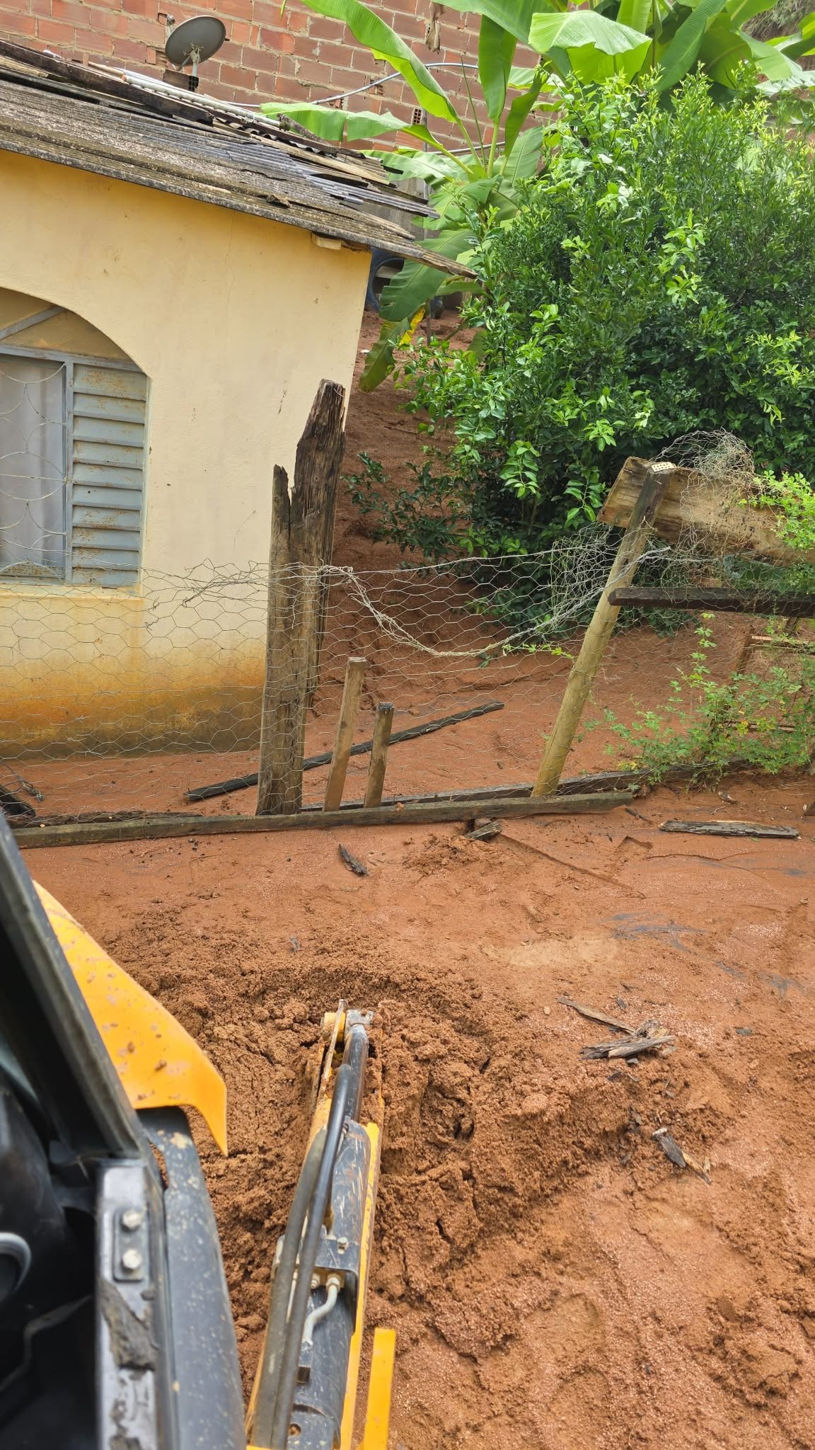 Prefeitura atua na remoção de lama em residência atingida pelas chuvas no interior