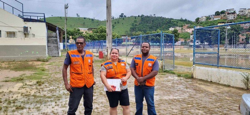 Ainda no bairro Campo Novo, o vice-prefeito Wanderson Melgaço, acompanhado da equipe da Defesa Civil, Corpo de Bombeiros, da secretária e subsecretário de Esporte e Lazer, Grasiele Marques e Marcelo Gregório Alves vistoriaram o estádio municipal Joaquim Alves de Souza, que ficou alagado com a enchente de ontem, para avaliar os prejuízos e planejar a recuperação do espaço esportivo. Uma equipe de servidores da prefeitura está realizando a limpeza dos vestiários, que ficaram tomados pelas enchorradas durante a enchente.