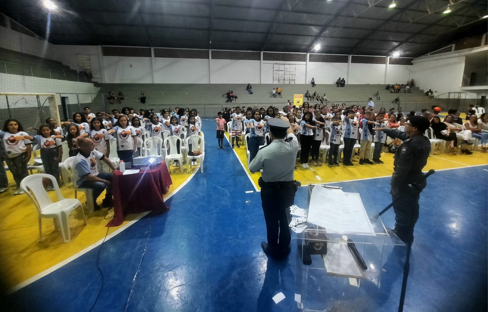 Durante a cerimônia teve sorteio de brindes e foi anunciado os quatro estudantes destaques na redação Proerd, além de homenagens aos instrutores tenentes, Meneses e Eliseu, juramento e apresentação da mascote do programa.