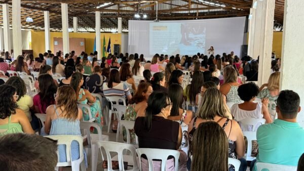 Profissionais da Educação de Nova Venécia se reuniram nesta segunda-feira (3) em dois momentos (manhã e tarde), no Cerimonial D’Venézia, para a cerimônia de abertura do Ano Letivo 2025. O evento, que contou com a presença de professores, supervisores, diretores e coordenadores escolares da rede municipal de ensino, teve o objetivo de dar boas-vindas aos profissionais que iniciam o trabalho para mais um ano de ensino.