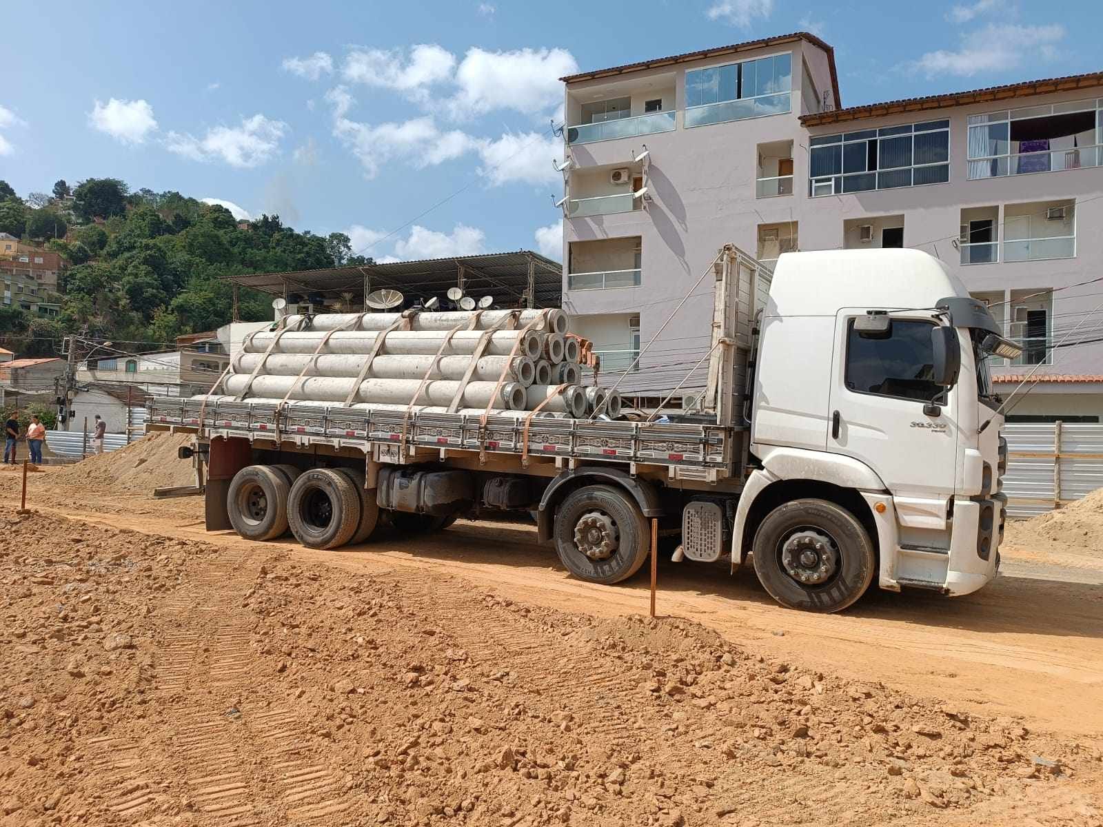 Nesta segunda feira (26), chegou o segundo caminhão com estaca para iniciar a fundação (base), para a construção do terminal rodoviário no centro de Barra de São Francisco, obra esta que está sendo realizada pela empresa Nova Bahia LTDA, inclusive os trabalhadores estão no local preparando a área começar a reerguer a obra.