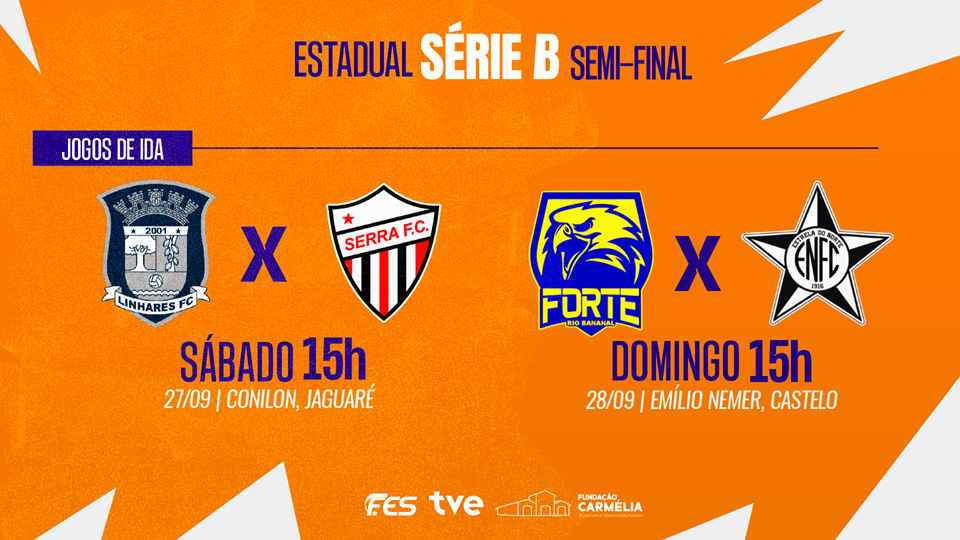 Transmissão das Semifinais da Série B: canal 2.1 da TV aberta, ou na página da TVE no YouTube (https://www.youtube.com/@tveespiritosanto). 27 de setembro, sábado: Linhares x Serra, às 15 horas.