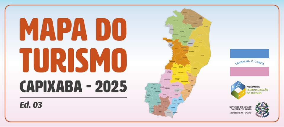 A Secretaria do Turismo (Setur), por meio da Gerência de Gestão do Turismo (Gestur), atualizou a edição 2025 do Mapa do Turismo Brasileiro, instrumento fundamental para o planejamento e fortalecimento do setor turístico no Espírito Santo. A publicação, divulgada nesta segunda-feira (22), inclui 74 municípios capixabas, representando mais de 90% de participação e abrangendo todas as dez Regiões Turísticas do Estado.