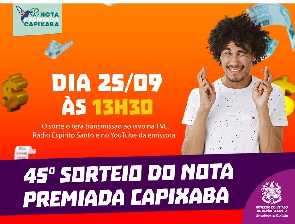 Pode começar a torcer: quinta-feira (25) tem sorteio do Nota Premiada Capixaba, o maior programa de educação fiscal do Espírito Santo, com transmissão ao vivo pela TVE Espírito Santo, pela Rádio Espírito Santo e pelos canais da emissora nas redes sociais, às 13h30.