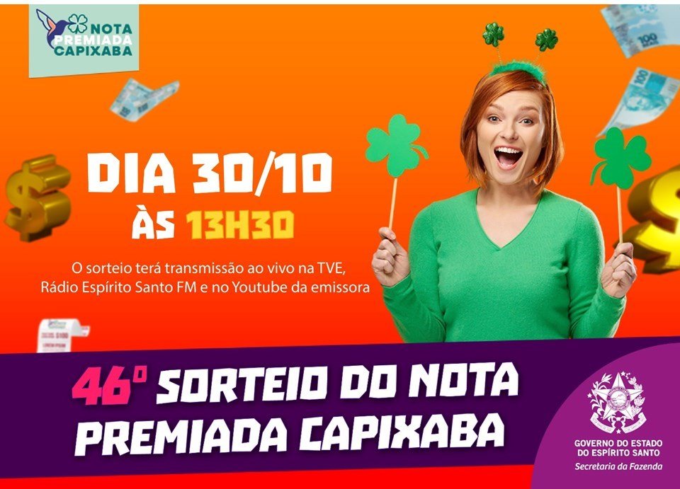Lembrete importante para os mais de 167 mil cidadãos cadastrados no Nota Premiada Capixaba, o maior programa de educação fiscal do Espírito Santo: nesta quinta-feira (30), às 13h30, acontece o sorteio de outubro, com transmissão ao vivo pela TVE Espírito Santo, pela Rádio Espírito Santo FM e pelas redes sociais da emissora.